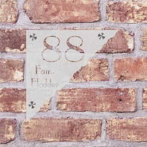 Dit mooie naambord van mat glas heeft een robuuste gebrokkelde rand. Het glazen naambord wordt speciaal voor jou volledig met de hand op maat gemaakt. Unieker kan het dus niet.